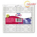 Plastová textura s několika dekorativními vzory FIMO. Rozměr textury 150 x 168 mm. Textura je speciálně určena pro polymerovou hmotu FIMO a pro hmoty FIMO Air, lze ji také použít pro obtiskování na papír pomocí tuše, barev a pastelek.