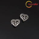 Kovový korálek ve tvaru srdce s motýlkem uprostřed v barevné úpravě starostříbro. 10 x 12 x 4 mm, cena za 2ks.