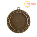 Ozdobné kruhové lůžko v barevné úpravě starobronz. Na rubové straně reliéf s lebkou Rozměry: 30 mm (vnitřní průměr lůžka), 46 x 41 mm x 5 mm (vnější rozměr). V balení 1 kus....