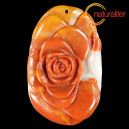 Motiv růže s malým ptáčkem na boku vyřezaný do směsi minerálů (jaspis, aventurín a křemen), kdy se jednotlivé barvy prolínají a vzájemně doplňují. Přívěsek je větší a těžší: 60...