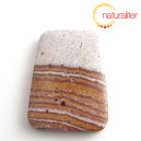 Přívěsek ze zajímavě vrstveného ryolitu (Wonderstone). Vrtaný z boku. 51 x 39 x 7.5 mm, 26.3 g.