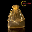 Ozdobný organzový sáček (pytlík) se stahovací stuhou zlaté barvy. Celkový (vnější) rozměr 120 x 90 mm, cena za 1 ks.