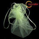 Světle zelený dárkový organzový sáček. Pytlík je vytvarovaný jako kruh o průměru 38 cm se stužkou, která jej stahuje do tvaru měšce. Stužku stahujte z vnitřní strany měšce....