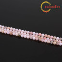 Kulaté korálky z růžového opálu. Průměr korálku 4 mm, cena za návlek dlouhý 39 cm.