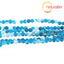 Kulaté korálky z pruhovaného achátu modré barvy (barvený). Průměr korálku 4 mm, cena za návlek dlouhý 37 cm. Přírodní materiál - minerál v kvalitě B, může obsahovat vady jako praskliny nebo inkluze.