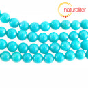 Kulaté korálky z tzv. moshanského jadeitu - kalcit nebo dolomit obarvený na tyrkysovou barvu. Průměr korálku 8 mm, cena za návlek dlouhý 40 cm.