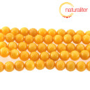 Kulaté korálky z tzv. moshanského jadeitu - kalcit nebo dolomit obarvený na slunečnicovou žlutou barvu. Průměr korálku 8 mm, cena za návlek dlouhý 39 cm.