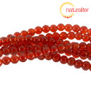 Kulaté korálky z karneolu, oranžovo-červená barva, přibarvené. Průměr korálku 6 mm, cena za návlek dlouhý 37 cm.
