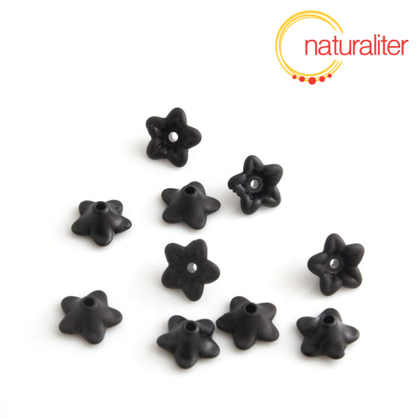 Černý akrylový korálek ve tvaru kytičky pro tvorbu šperků a dekorací.