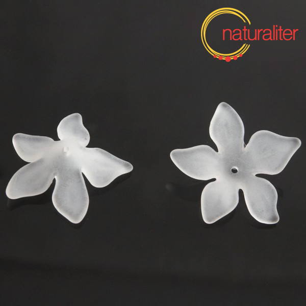 Bílý akrylový korálek ve tvaru kytičky na šperky a dekorace.