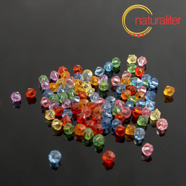 Směs různých barev akrylových korálků ve tvru dvojitého kužele s ploškami.