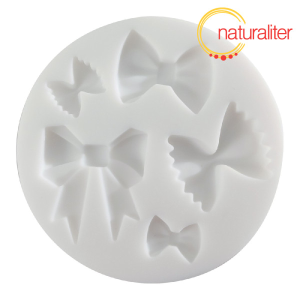 Obsahuje 5 různých vzorů mašlí a motýlků. Průměr celé formy je 7 cm.