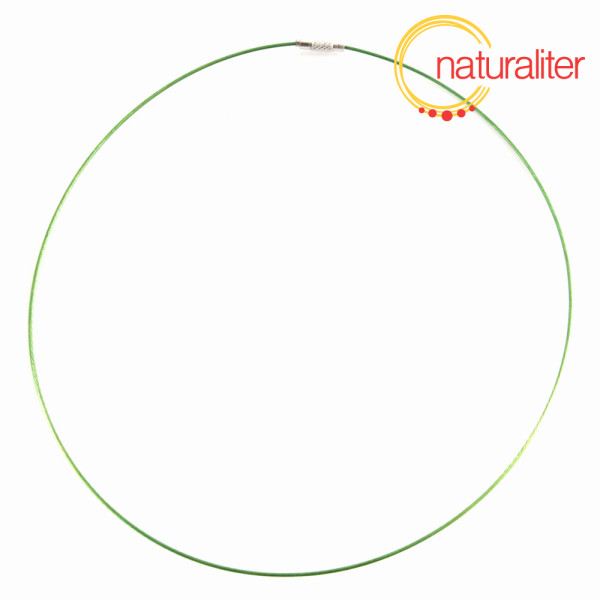 Hotová obruč z lanka se šroubovacím zapínáním pro výrobu náhrdelníku. Zelená barva lanka.