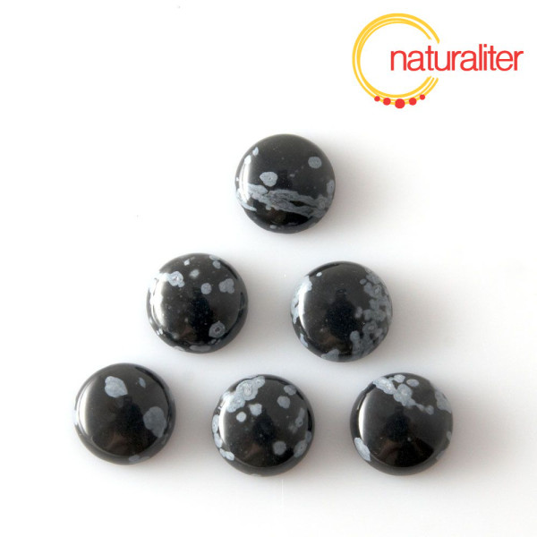 Kabošon (mugle) o průměru 8 mm z přírodního vločkového obsidiánu.