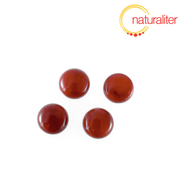 Kabošon z červeného korálu (červenohnědá barva), přibarvený, kulatý, průměr 10 mm. Cena za 1 ks.
