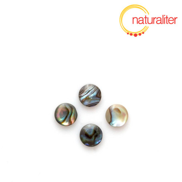 Kabošon z perleti paua zpevněné pryskyřičnou vrstvou, kulatý, průměr 6 mm. Cena za 1 ks.