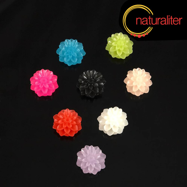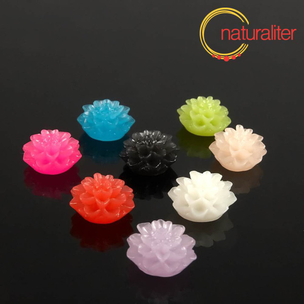 Kytička - kabošon z pryskyřice 15mm, směs, 5ks