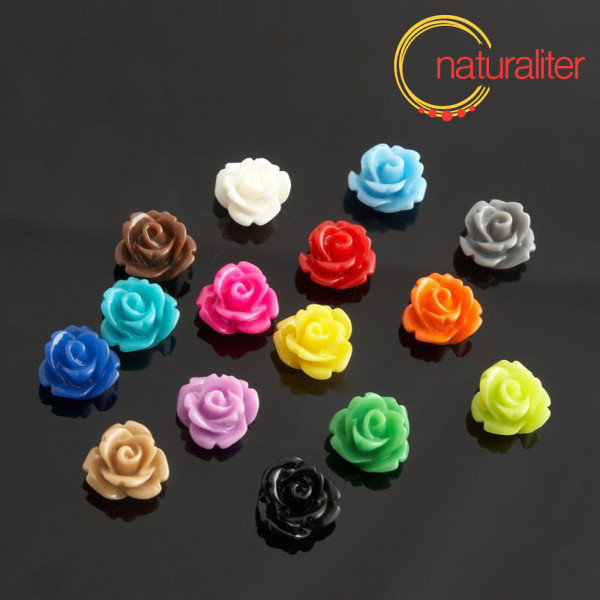 Růžička - kabošon z pryskyřice 10mm, směs, 10ks
