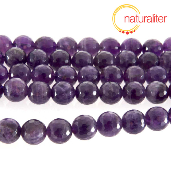 Korálky z ametystu s vybroušenými lesklými ploškami - fasetami, které odrážejí světlo.