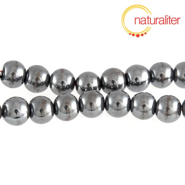 Kulaté korálky ze syntetického hematitu. Kvalita B - povrch je u některých korálků zkorodován.