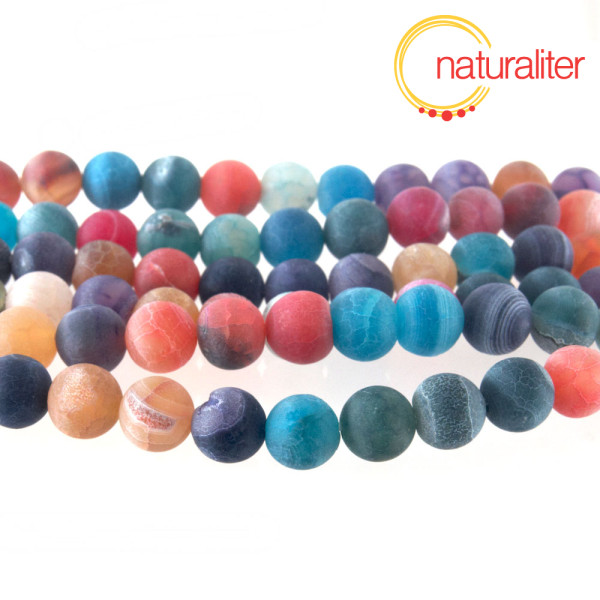 Kulaté korálky z barveného krakelovaného achátu - směs různých pestrobarevných korálků náhodných barev na šňůře. Průměr korálku 8 mm, cena za návlek dlouhý 36 cm, kvalita korálků B-C.