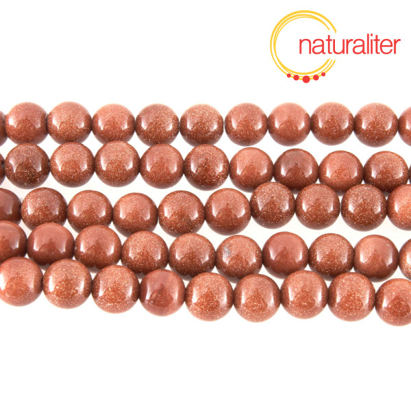 Kulaté korálky z aventurínového skla - goldstone. Zlatohnědá barva s drobnými třpytivými tečkami v materiálu.