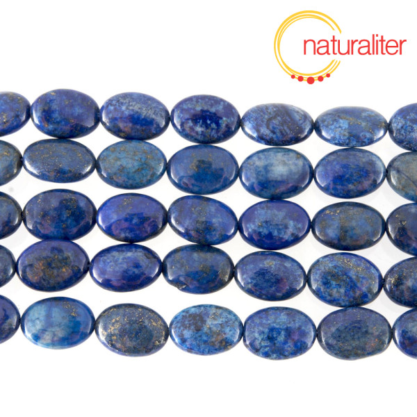 Korálky ve tvaru plochých oválů z lapisu lazuli.