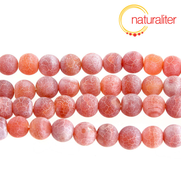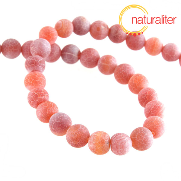 Achát krakelovaný, oranžovočervený - korálky 8mm, návlek 37cm