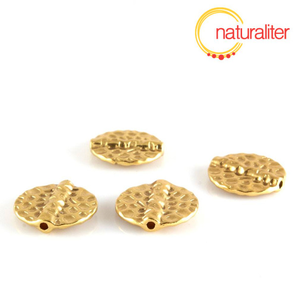 Korálek ve tvaru placky s plastickým reliéfem v tibetském stylu - zlatá barevná úprava.