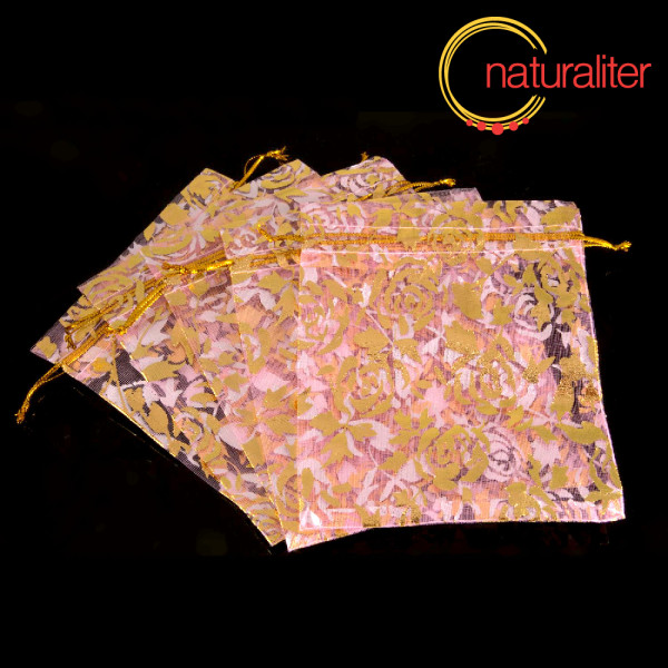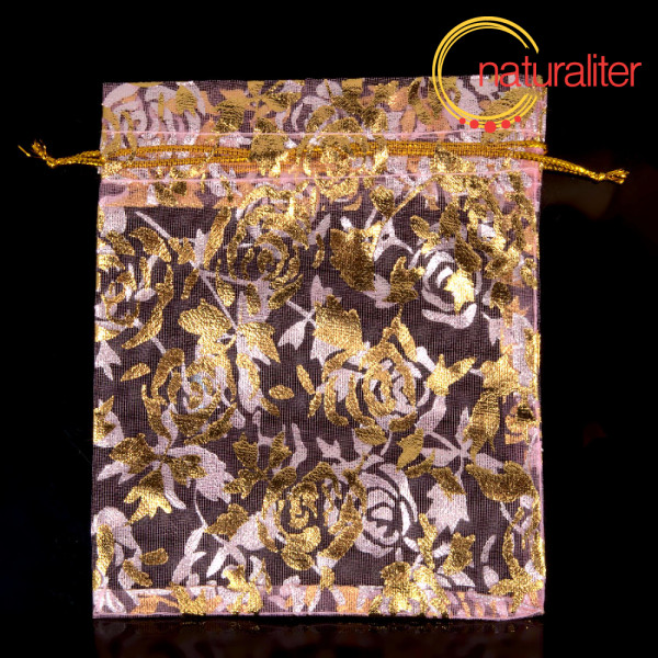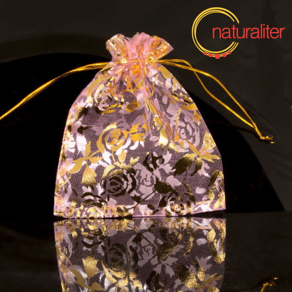 Dárkový organzový sáček růžový s růžemi 12x10cm