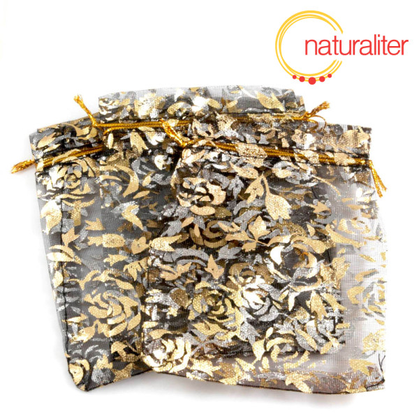 Dárkový organzový sáček černý s růžemi 12x10cm