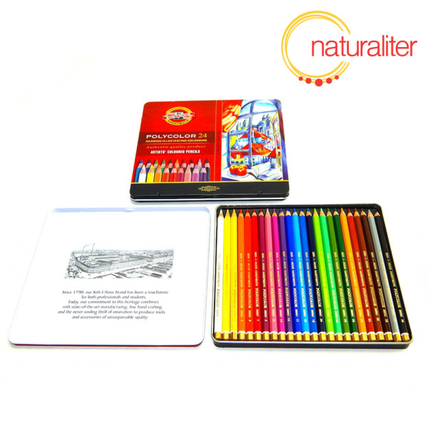 Sada 24 uměleckých vodovzdorných pastelek Koh-i-noor Polycolor. Díky technologii výroby pastelky vynikají svou světlostálostí, přilnavostí barev a čistotou barev.