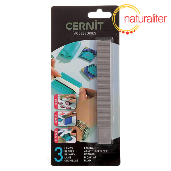 Vyrobeny z tenké nerezové oceli, v sadě 3 různé čepele - pevná rovná, vlnkovaná a ohýbatelná flexibilní. Pomocí těchto nožů můžete přesně krájet polymerovou hmotu pro techniky mokume, kaleidoskop nebo millefiori.