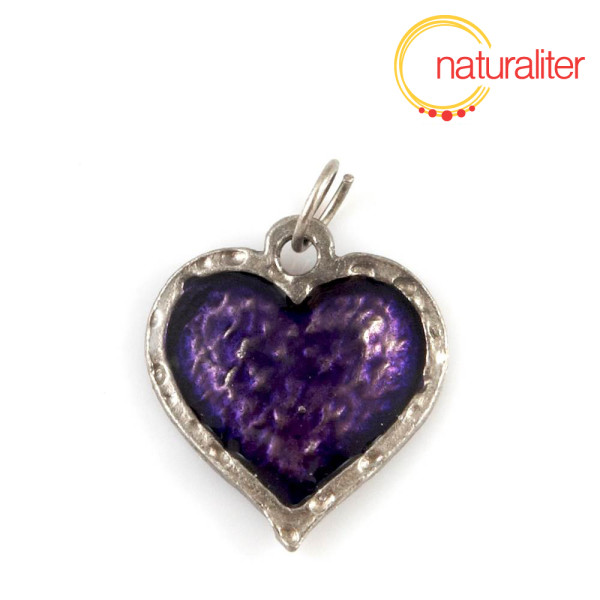 Přívěsek ve tvaru srdce v barevné úpravě starostříbro s fialovou výplní.