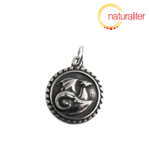 Decentní přívěsek s motivem draka v kruhu, který se hodí na zavěšení na krk. Díky tomu, že přívěsek je z nerezové oceli je vhodný i pro osoby citlivé nebo alergické na běžné kovy.