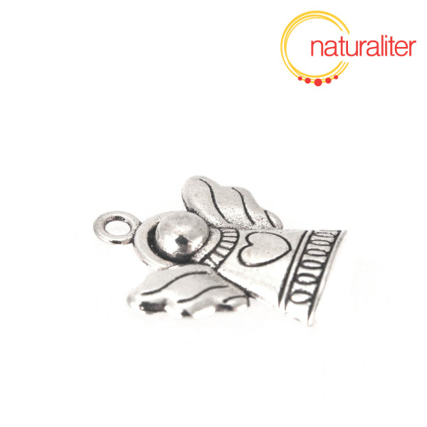 Kovový pívěsek, který zobrazuje postavičku - anděla s očkem pro zavěšení.