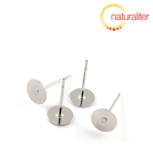 Náušnicový komponent z nerezové oceli s ploškou, na kterou lze přilepit výrobek z polymerové hmoty nebo kabošon. Díky použitému materiálu - nerezové oceli mohou náušnice nosit i lidé, kteří jsou citliví nebo alergičtí na běžné kovy.