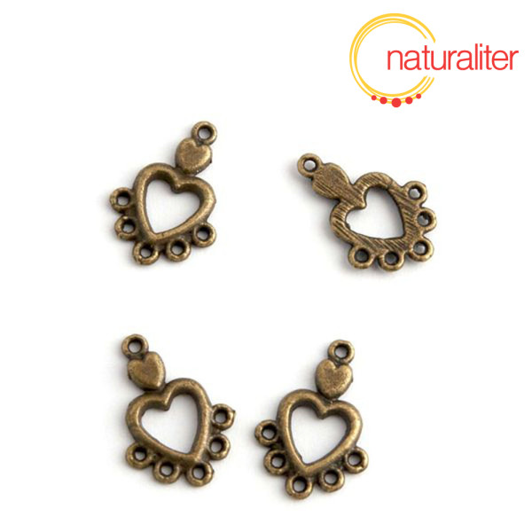 Ozdobné ramínko - srdce 5 oček, starobronz 13x19mm, 4ks