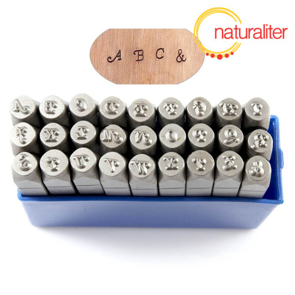 Sada razících matric - ozdobná velká písmena A-Z a symbol &. Velikost 3 mm (výška znaku), 27 raznic.