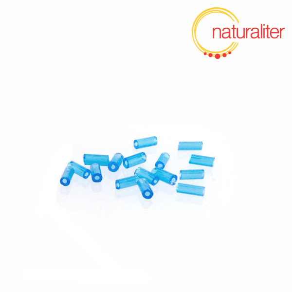 Sekaný skleněný trubičkový rokajl - modrý průsvitný.