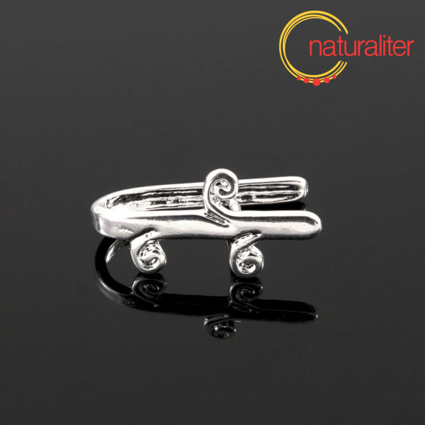 Tenká šlupna s ozdobnými spirálkami ve stříbrné barevné úpravě.