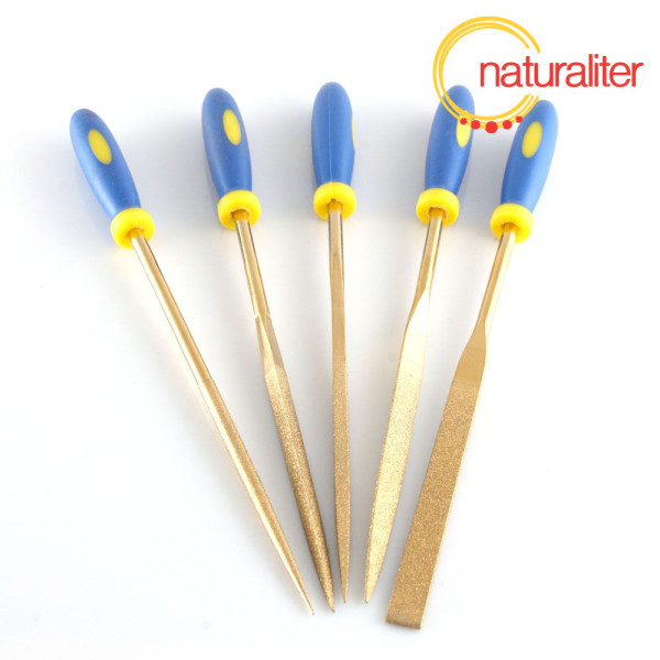 5 ocelových pilníků v sadě krytých diamantovou brusnou vrstvou. Střední drsnost.