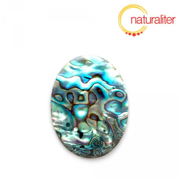 Kabošon z perleti paua zpevněné pryskyřičnou vrstvou, oválný 40 x 30 mm.