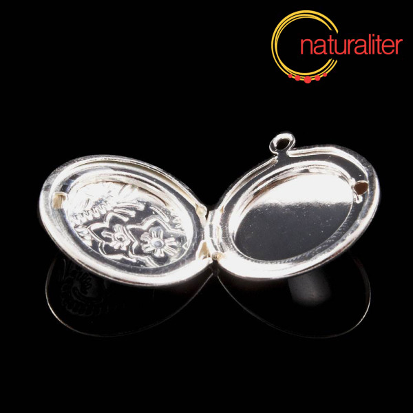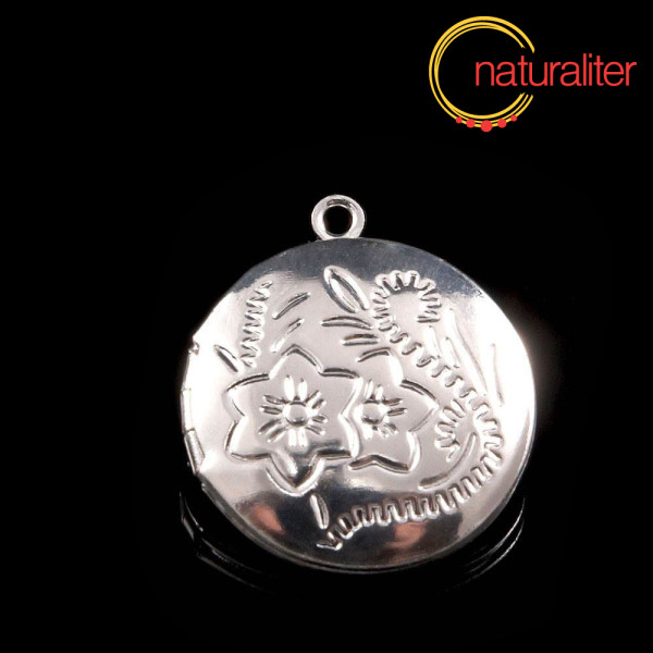 Otvírací kruhový medailon s motivem květin ve stříbrné barevné úpravě.