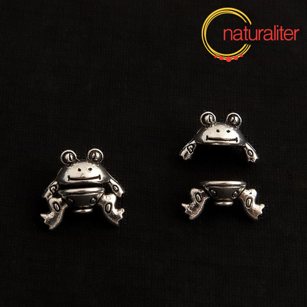 Dvoudílný kaplík na korálek ve tvaru žabičky ve starostříbrné barvě. Žabka je vhodná pro 8 - 10mm korálek.