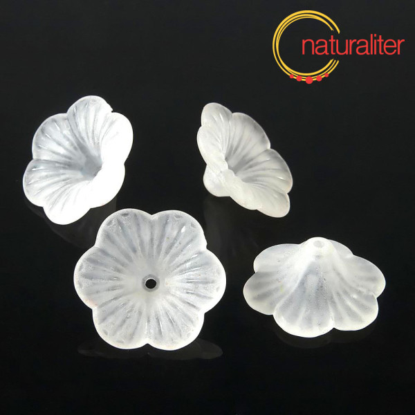 Bílý akrylový korálek ve tvaru kytičky pro výrobu šperků a dekorací.