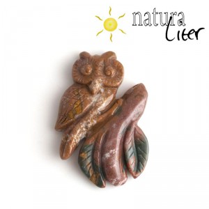 Přívěsek z achátu - vyřezávaný motiv sovy. Otvor na provlečení šňůrky je nahoře na větvičce z boku. 51 x 36 x 8 mm, 16 g.