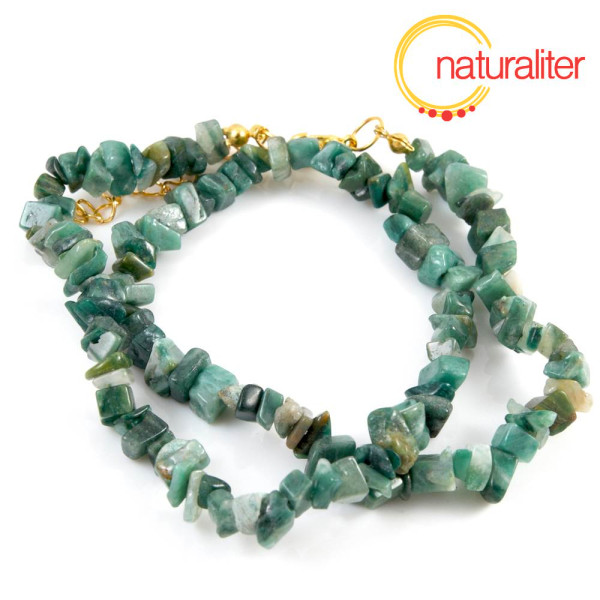 Návlek zlomků ze zeleného prasemu, zlomky jsou velké cca 5 -10 mm.