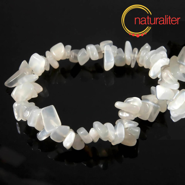 Návlek zlomků z šedéhoo měsíčního kamene s bílými odlesky (adulár), zlomky jsou velké cca 5 -10 mm.